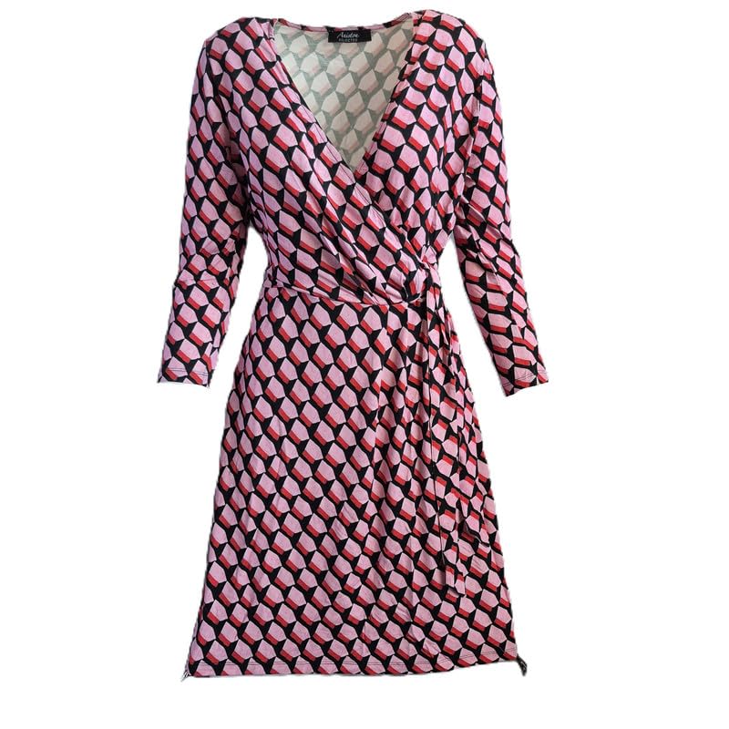 - PASSFORM: Wickelkleid-Silhouette mit V-Ausschnitt und 3/4-Ärmeln, perfekt für Größe 46